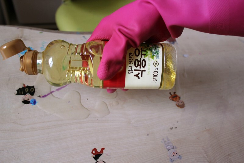 식용유를 바르고 마른 행주로 닦으면 스티커 자국이 금세 없어집니다. 폐식용유는 재활용하여 비누로도 만들 수 있는데요.