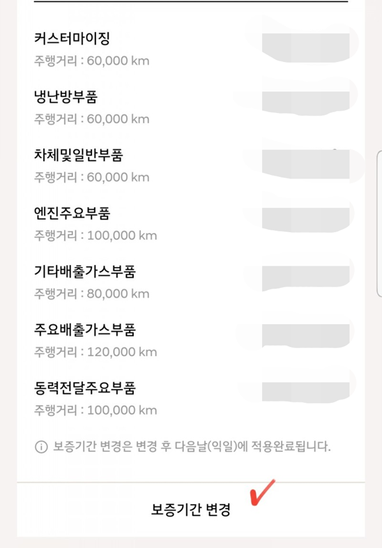 그러면 내 차의 부품별 보증기간이 나타나는데요.