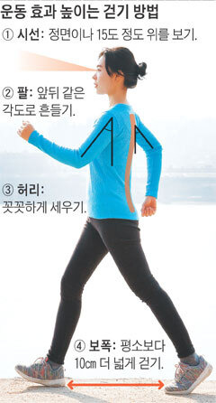 보폭을 10cm 넓혀 걷기