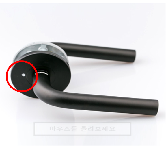 첫번째로 레버형 손잡이(버튼형)인데요. 이 손잡이를 보시면 좌측에 저런 구멍이 있는 것을 알 수 있습니다.
