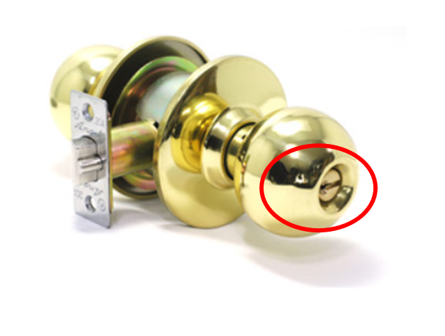 두번째는 원통형 손잡이인데요. 이 손잡이의 경우 중앙에 열쇠 구멍이 있습니다. 만일 열쇠가 없다면 이렇게 열어보시기 바랍니다.
