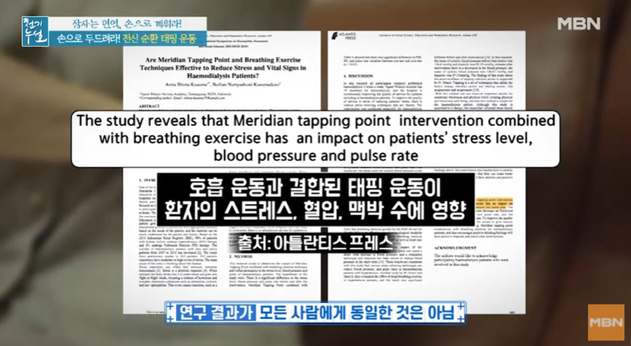 실제로 연구 결과에 따르면 태핑운동이 스트레스, 혈압, 맥박을 안정시킨다는 연구 결과도 있습니다.