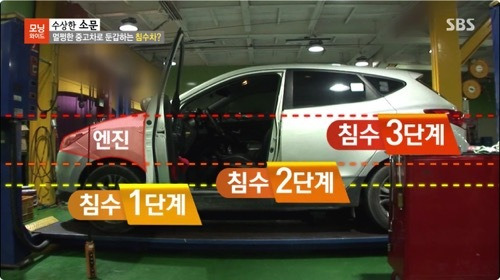 침수차란 말 그대로 차량이 물에 잠겼던 이력이 있던 차인데요. 침수 단계에 따라 3단계로 나눠집니다.