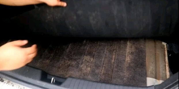 4. 트렁크 속 스페어 타이어 부분을 확인하여 진흙의 흔적을 찾는다.