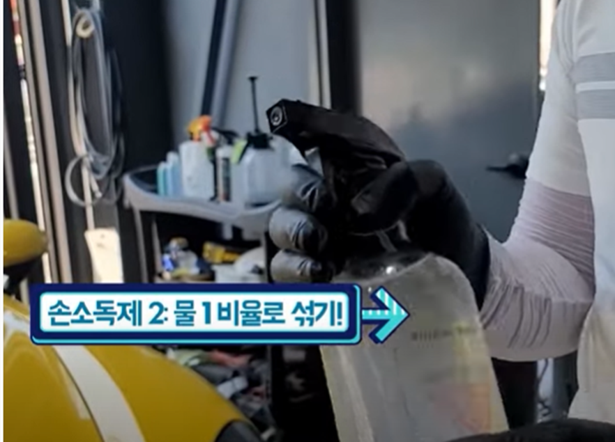손소독제와 물을 2:1 비율로 섞어서 분무기통에 넣어줍니다.